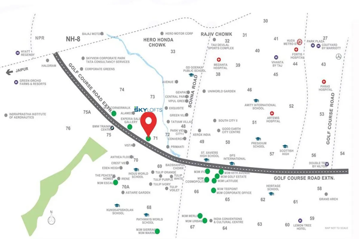 Pyramid 71 is situated in the rapidly developing area of Gurugram, offering a harmonious blend of peaceful living and modern amenities. The lush green surroundings provide a refreshing escape from the hustle and bustle of city life, creating a serene environment for residents to call home.